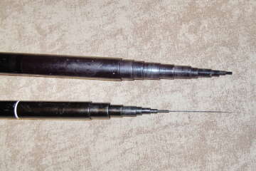 2)маховое удилище из японии (производитель не определен) рост 5,4м, в сложенном виде 55см, вес 270гр (много царапин и потертостей, загрязнения,заклинило колено вершинка , нет чехла) 12 колен