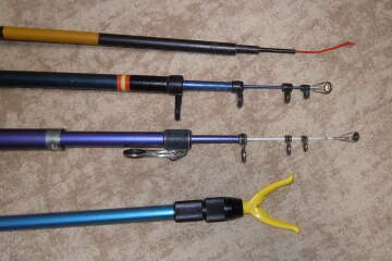 3)Удилище с кольцами Pro cast 330 (очень древнее) рост 3.3м, в сложенном виде 1м, вес 350гр, 4 колена (много царапин и потертостей, загрязнения, нет чехла)