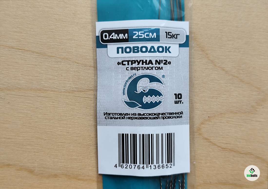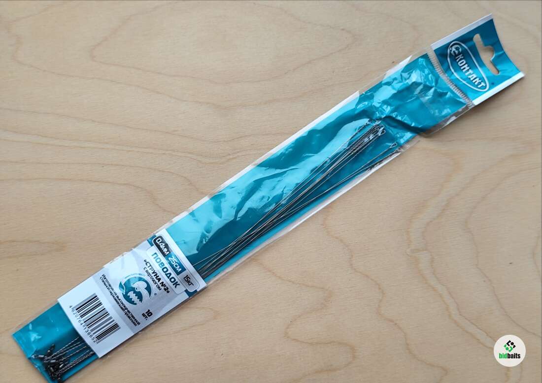 Поводки Контакт "Струна №2" с вертлюгом 0,4мм/25см/15кг/10шт