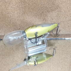 Megabass Deep X-300 75mm 21gr 5m (облезла вся краска с одного бока, крупные сколы краски, потерта лопата, ржа на крючках)