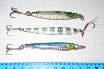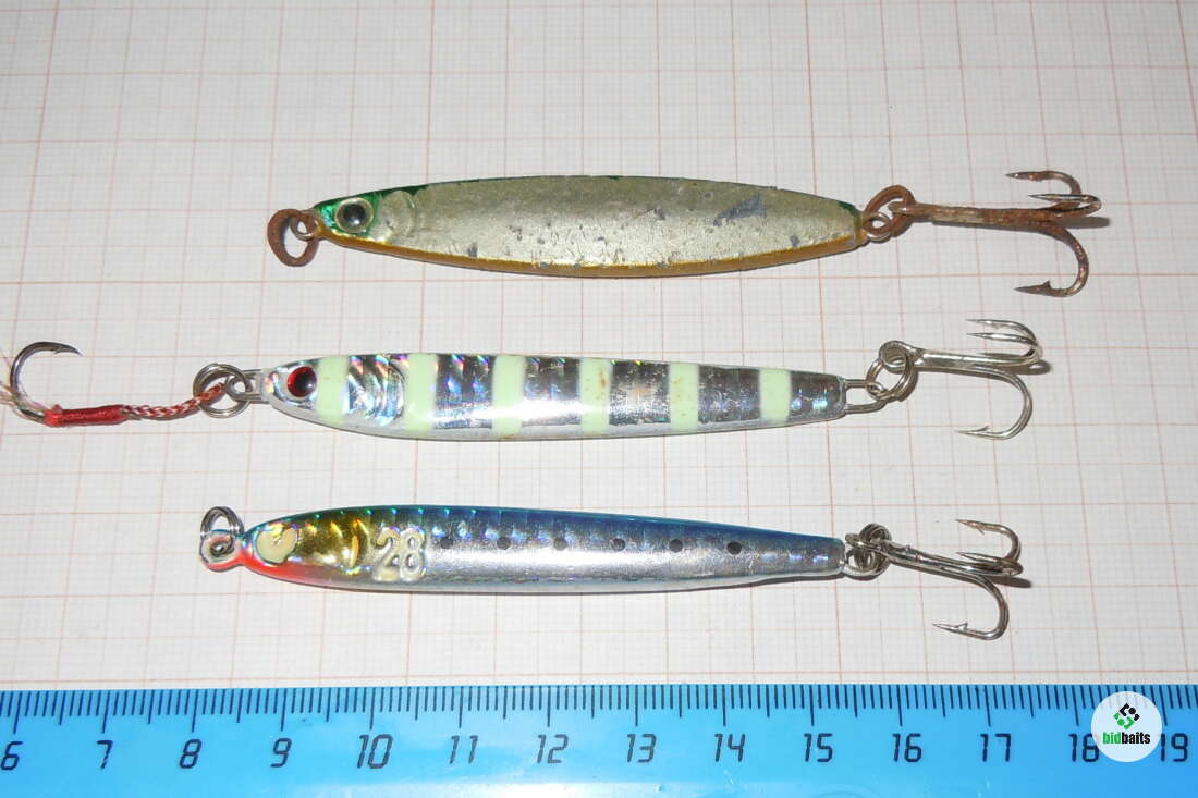 №6 набор пилькеров из Японии (веса 25гр+28гр+28гр) (потертости,сколы краски, окислы, ржа на крючках)