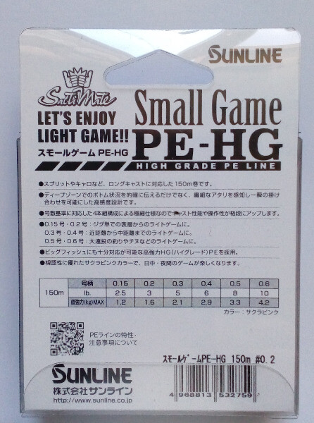 Оригинал. Япония. Sunline Small Game, материал PE-High Grade, размотка 150м, диаметр 0.4 (0.104мм), нагрузка 6lb (2.9кг), цвет розовый (для лучшей видимости ночью и в сумерках) производство Япония.