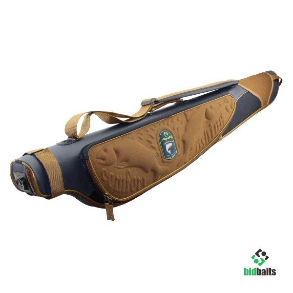 Снаружи расположен длинный карман для подсака или стоек и объемный карман на молнии для аксессуаров. В чехол помещается до 5 удилищ с катушками. Внутренняя часть выполнена из мягкого ворсистого материала на который крепятся специальные подушки для катушек.