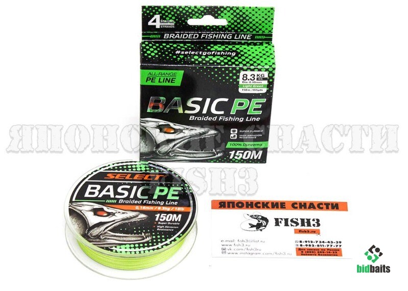 Select Basic PE - бюджетный плетеный шнур, созданный для спиннингистов-любителей. Имеет круглое сечение. Шнур получился в меру жестким, скользким и износостойким. У него незначительная парусность и гладкая поверхность. Эти качества как нельзя лучше влияют на дальность заброса. Лучше всего эта серия работает с твичинговыми приманками, а также отлично подходит для джига. Basic PE имеет хорошую чувствительность даже при ловле с очень легкими оснастками. Размотка - 150 м. В серии большой выбор диаметров - 0,4 от до 0,26 мм. Вариантов расцветки несколько - темно и светло-зеленый, оранжевый и мультиколор