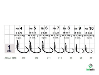 Размерность крючков указана в европейском варианте.