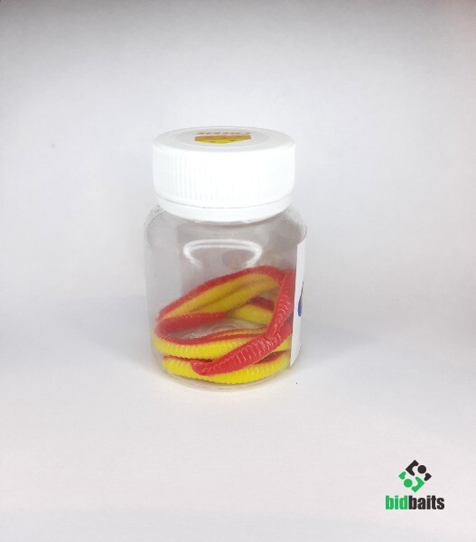 Приманки упакованы в пластиковые баночки, которые хорошо сохраняют их "съедобные" свойства.