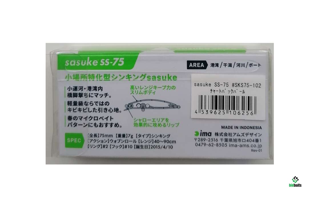 sasuke SS-75, AREA, длина 75 мм; вес 7гр.; тонущий (S), рабочая глубина 0,4-0,9м, с шарами, крючки №10, # 102 Chart back pearl