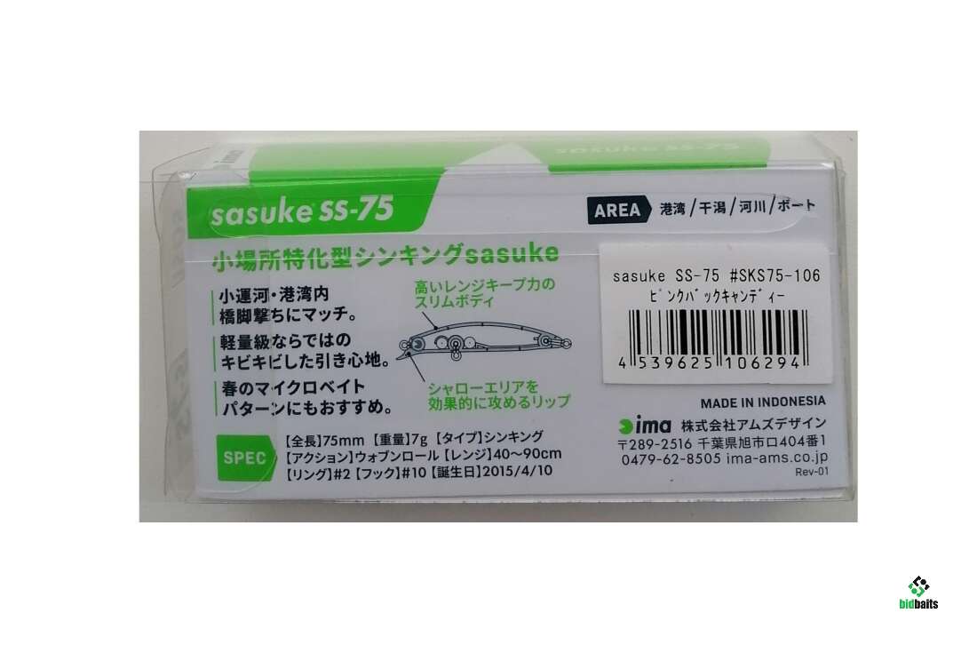 sasuke SS-75, AREA, длина 75 мм; вес 7гр.; тонущий (S), рабочая глубина 0,4-0,9м, с шарами, крючки №10, # 106