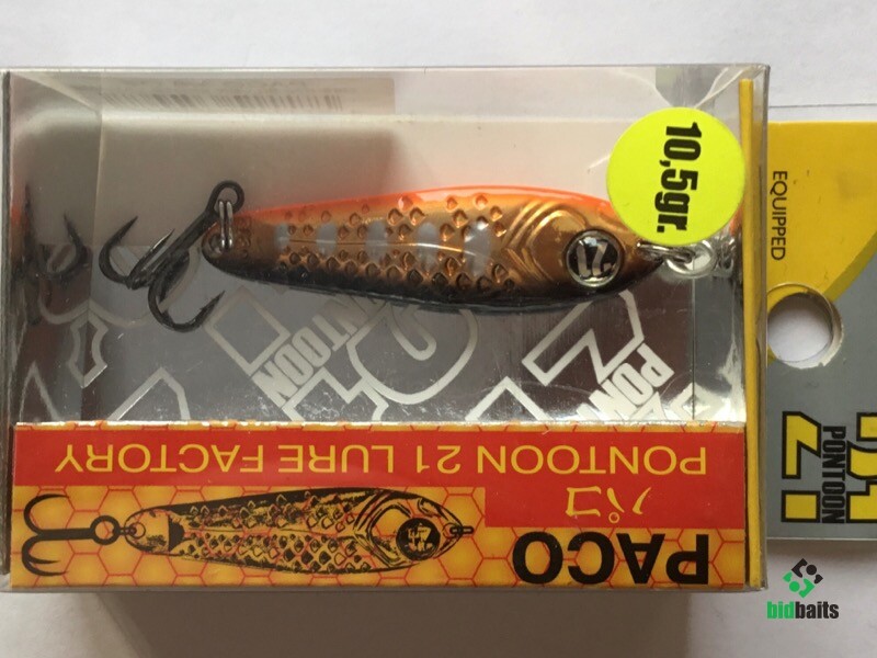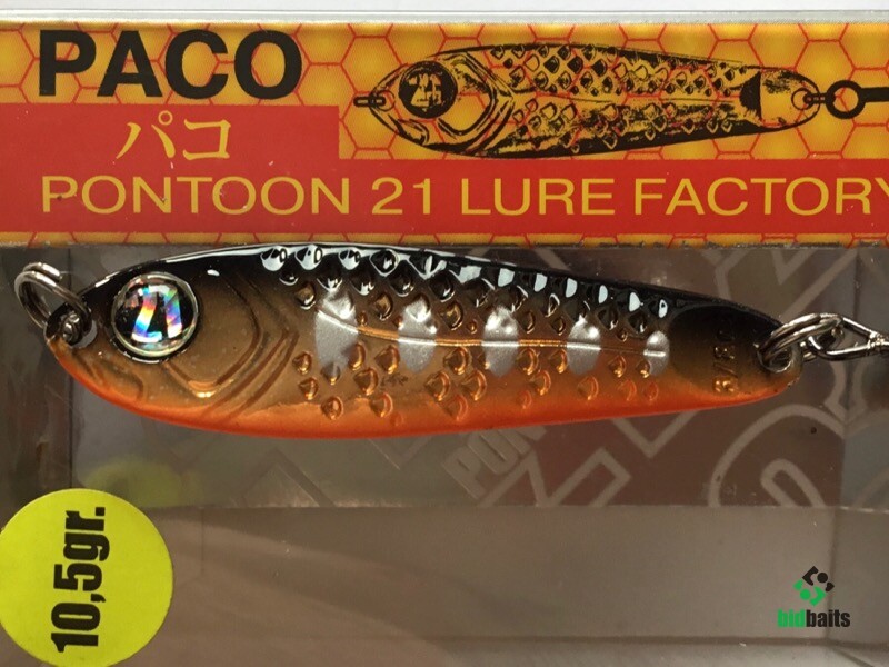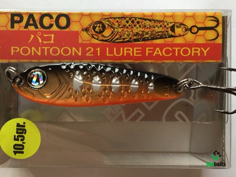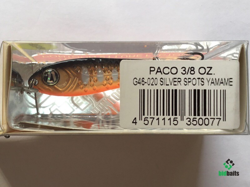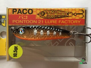 Выпускается в трех размерах: Paco 11 (3/8 oz — длина 48 мм, масса 10.5 г), Paco 14 (1/2 oz, длина 55 мм, масса 14 г), Paco 21 (длина 64 мм, масса 21 г). И в 11 вариантах уловистых расцветок, в основе которых — качественное гальваническое покрытие, поверх которого наносится многослойное лакокрасочное. Расцветки есть как максимально приближенные к живым прототипам — мелкой рыбешке, так и яркие, с «кислотными» тонами и UV-эффектом.