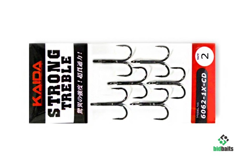 Kaida 6062 крючки традиционного вида. Высокая прочность достигнута путём применения стали специальной обработки. Остро заточенные жала отлично пробивают пасть рыбы. Крючки обработаны черным антикоррозийным покрытием.