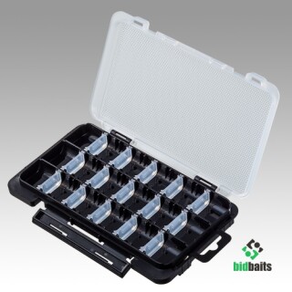 Meiho Versus Light Game Case J - компактная, тонкая коробка для ультралайтовых принадлежностей: небольших приманок и мелких аксессуаров. В комплекте Meiho Light Game Case J идет 15 съемных разделителей, которые можно расставлять в разных положениях в зависимости от необходимости. Коробка односторонняя, но при необходимости две коробки можно соединить в одну, благодаря специальной конструкции дна или сделать двойную в сочетании с коробкой Meiho Slit Form Case Yellow. Коробка Light Game Case J изготовлена из прочного надежного пластика, пригодного для хранения силиконовых приманок.