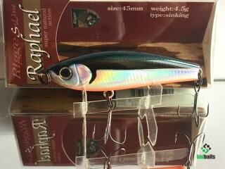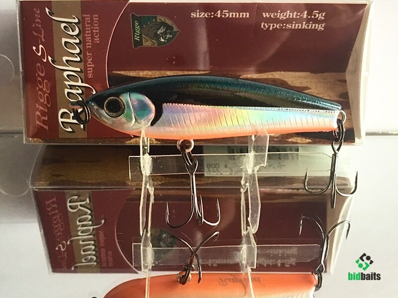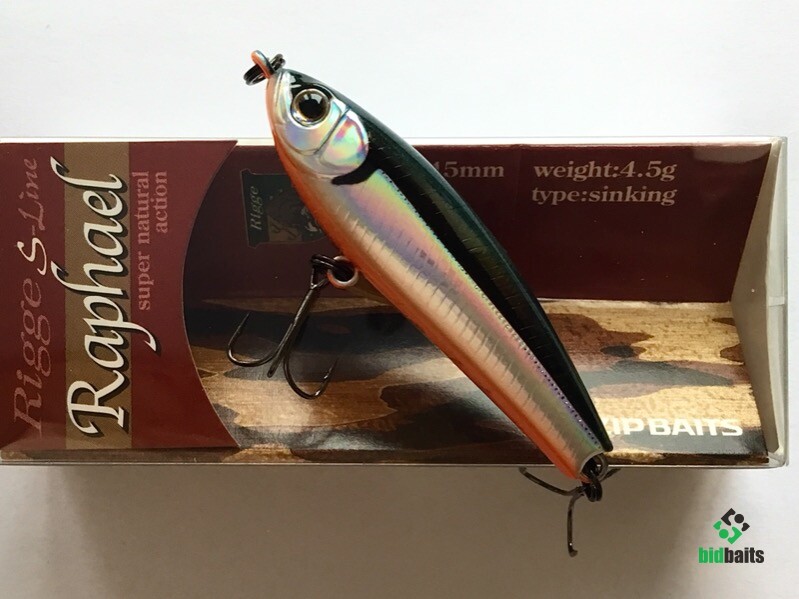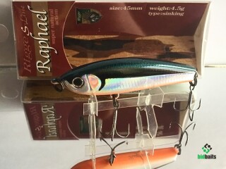Классическое для воблеров серии прогонисто-обтекаемое тело прекрасно сбалансировано. Центр тяжести Raphael отрегулирован так, что позволяет осуществлять не только дальний прицельный заброс, но и контролировать поведение самого «уокера» уже в воде во время проводки. Ещё один небольшой конструктивный нюанс: носовая крепежная петля развернута в горизонтальной плоскости, обеспечивая тем самым незначительный подъем приманки при поступательном движении.