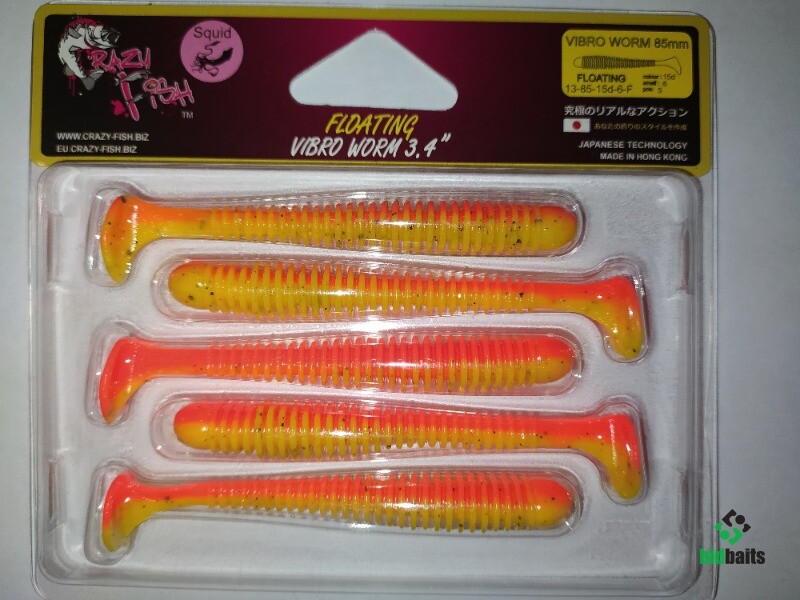 Crazy Fish Vibro Worm 3.4" 8.5 см, цв. 15d (5 шт. в уп.) плавающие