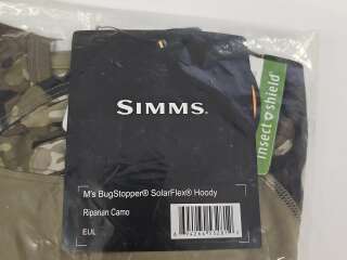Термофутболка Simms Bugstopper Solarflex Hoody (цвет Riparian Camo) размер L - оснащена капюшоном, обеспечивающим защиту от солнца не только туловища, а также головы и шеи.