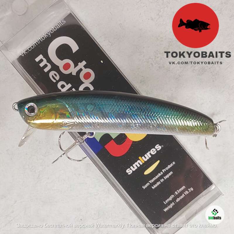 Воблер SUMLURES COTOCAS MEDIUM имеет скошенную под прямым углом носовую часть и короткую заглубляющую лопасть, обеспечивающую погружение приманки на глубину до 90 см.