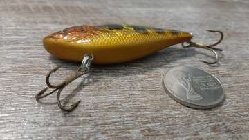 Состояние на фото - в этом случае затрудняюсь дать объективную оценку воблеру, как правило следы использования ярко выражены, может быть не всё хорошо с лкп,но видимых дефектов по функционалу не обнаружено