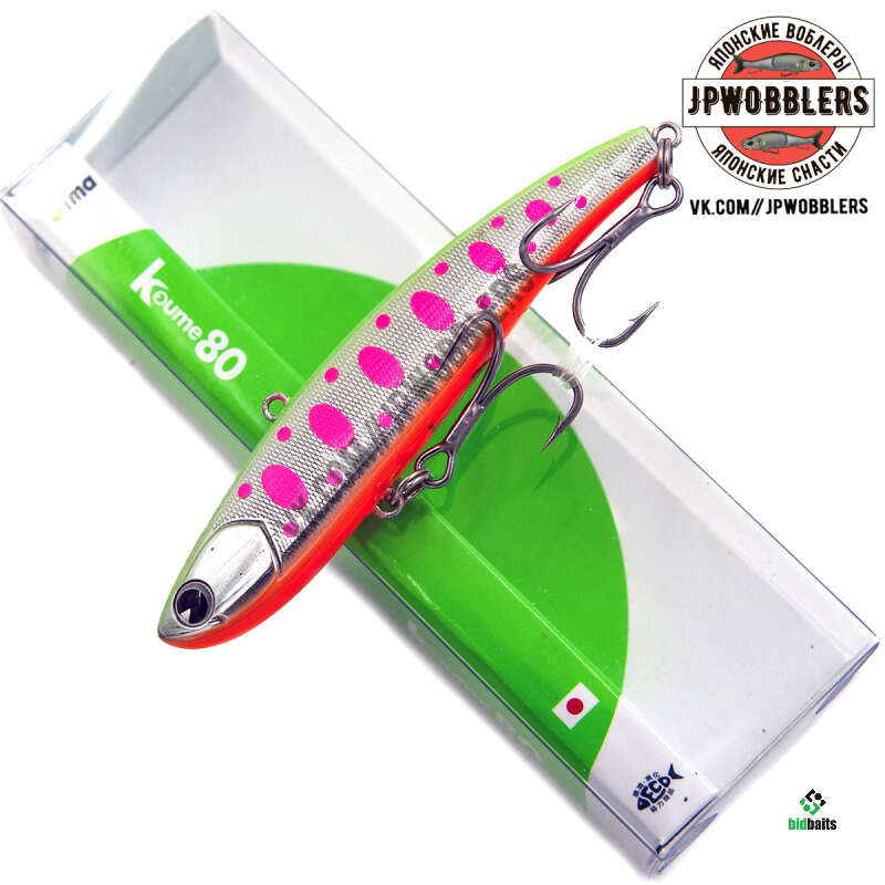 Средняя по размеру модель Koume 80 длинной восемь сантиметров и весом 15 гамм. В подвешенном состоянии в воздухе Koume 80 занимает горизонтальное положение с небольшим креном на нос. В воде благодаря воздушной камере в теле приманки, расположенной ближе к хвостовой части, крен на нос увеличивается. Это вносит свои нюансы в поведение Koume 80 на проводке. Игра очень активная, живая с дальним уходом от вертикали. И что самое главное – сохраняется тот неповторимый момент, когда наша приманка при сбросе отлично планирует на боку в сторону и потом возвращается в точку первоначального движения.