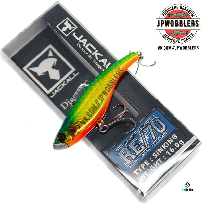 Новинка от компании Jackall - безлопастной раттлин RE/70. Приманка имеет несколько необычную, изгибающуюся в хвостовой части форму корпуса. Нос и лоб воблера, выполненные из металла, выполняют роль огрузки и стабилизируют положение приманки во время проводки. Металлическая носовая часть также выполняет роль резонатора, позволяющего четко определить характер донной поверхности. Также эта особенность защищает приманку от ударов при ловле на водоемах с каменистым дном. Четко выверенное расположение крепежного кольца на спине приманки обеспечит легкое и свободное прохождение сквозь подводные препятствия, траву или коряги. На спине раттлина RE/70 расположен пластиковый плавничок, который стабилизирует игру воблера и дает ему возможность не сбиваться с игры даже при самой медленной скорости подмотки. Раттлин обладает активной высокочастотной игрой. Приманка имеет свинцовый груз прямоугольной формы, расположенной внутри корпуса. Он расположен в пазу, размером чуть больше самого груза. При движении приманки в воде, груз издает специфичный звук, что хорошо привлекает рыбу с больших расстояний. В качестве крепления для тройников у RE/70 применены вертлюжки. Это позволяет тройникам свободно вращаться, что при вываживании не даст трофею шанса на сход. Тонущая приманка позволяет облавливать любые горизонты глубин. Изначально Jackall RE/70 разрабатывался для морской ловли сибасса. В водоемах нашей полосы он успешно применяется для ловли глубинных хищников. Подходит для ловли как на водоемах с течением, так и на водоемах с непроточной водой.