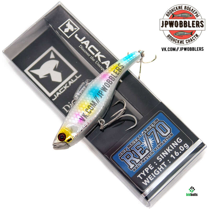 Новинка от компании Jackall - безлопастной раттлин RE/70. Приманка имеет несколько необычную, изгибающуюся в хвостовой части форму корпуса. Нос и лоб воблера, выполненные из металла, выполняют роль огрузки и стабилизируют положение приманки во время проводки. Металлическая носовая часть также выполняет роль резонатора, позволяющего четко определить характер донной поверхности. Также эта особенность защищает приманку от ударов при ловле на водоемах с каменистым дном. Четко выверенное расположение крепежного кольца на спине приманки обеспечит легкое и свободное прохождение сквозь подводные препятствия, траву или коряги. На спине раттлина RE/70 расположен пластиковый плавничок, который стабилизирует игру воблера и дает ему возможность не сбиваться с игры даже при самой медленной скорости подмотки. Раттлин обладает активной высокочастотной игрой. Приманка имеет свинцовый груз прямоугольной формы, расположенной внутри корпуса. Он расположен в пазу, размером чуть больше самого груза. При движении приманки в воде, груз издает специфичный звук, что хорошо привлекает рыбу с больших расстояний. В качестве крепления для тройников у RE/70 применены вертлюжки. Это позволяет тройникам свободно вращаться, что при вываживании не даст трофею шанса на сход. Тонущая приманка позволяет облавливать любые горизонты глубин. Изначально Jackall RE/70 разрабатывался для морской ловли сибасса. В водоемах нашей полосы он успешно применяется для ловли глубинных хищников. Подходит для ловли как на водоемах с течением, так и на водоемах с непроточной водой.