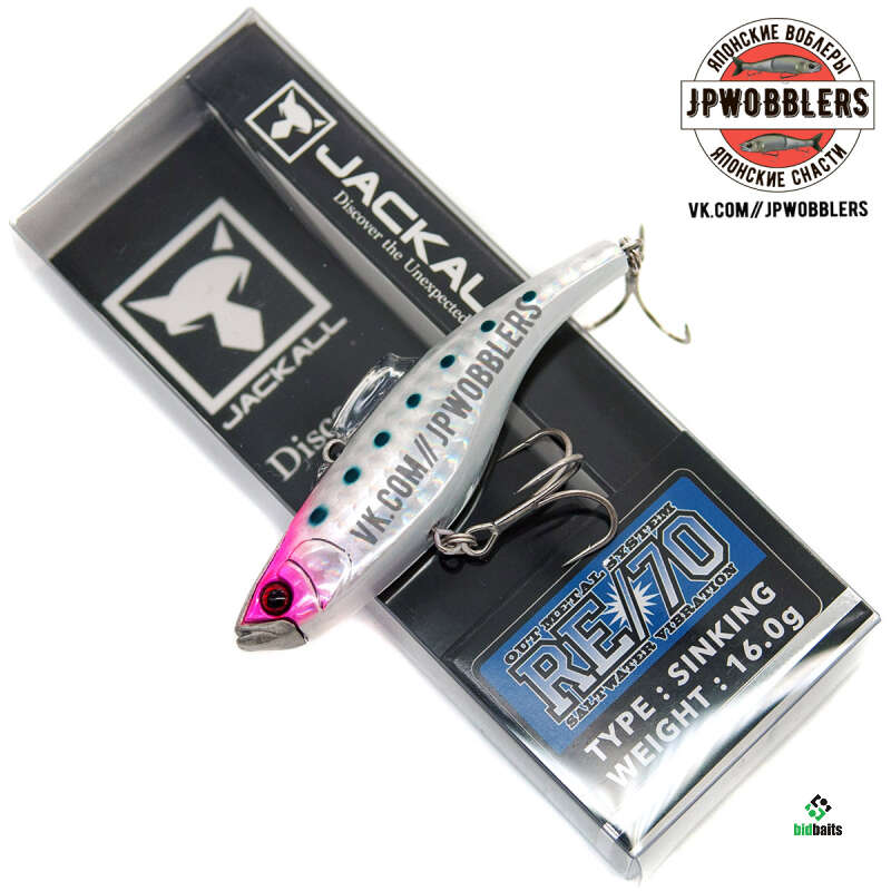 Новинка от компании Jackall - безлопастной раттлин RE/70. Приманка имеет несколько необычную, изгибающуюся в хвостовой части форму корпуса. Нос и лоб воблера, выполненные из металла, выполняют роль огрузки и стабилизируют положение приманки во время проводки. Металлическая носовая часть также выполняет роль резонатора, позволяющего четко определить характер донной поверхности. Также эта особенность защищает приманку от ударов при ловле на водоемах с каменистым дном. Четко выверенное расположение крепежного кольца на спине приманки обеспечит легкое и свободное прохождение сквозь подводные препятствия, траву или коряги. На спине раттлина RE/70 расположен пластиковый плавничок, который стабилизирует игру воблера и дает ему возможность не сбиваться с игры даже при самой медленной скорости подмотки. Раттлин обладает активной высокочастотной игрой. Приманка имеет свинцовый груз прямоугольной формы, расположенной внутри корпуса. Он расположен в пазу, размером чуть больше самого груза. При движении приманки в воде, груз издает специфичный звук, что хорошо привлекает рыбу с больших расстояний. В качестве крепления для тройников у RE/70 применены вертлюжки. Это позволяет тройникам свободно вращаться, что при вываживании не даст трофею шанса на сход. Тонущая приманка позволяет облавливать любые горизонты глубин. Изначально Jackall RE/70 разрабатывался для морской ловли сибасса. В водоемах нашей полосы он успешно применяется для ловли глубинных хищников. Подходит для ловли как на водоемах с течением, так и на водоемах с непроточной водой.