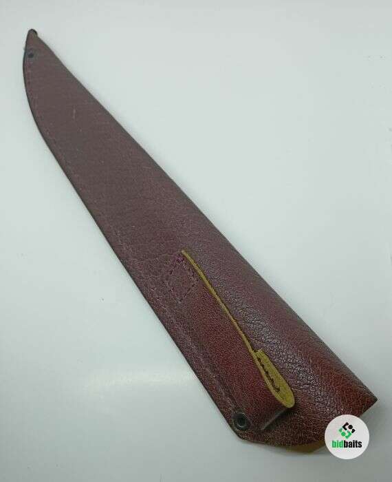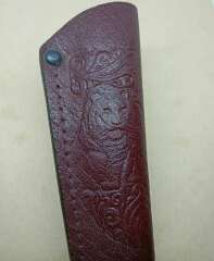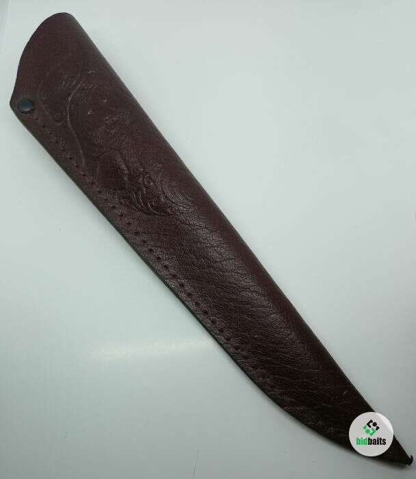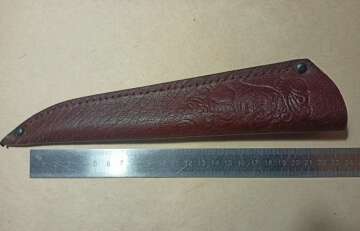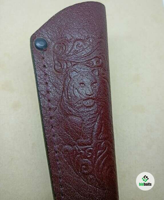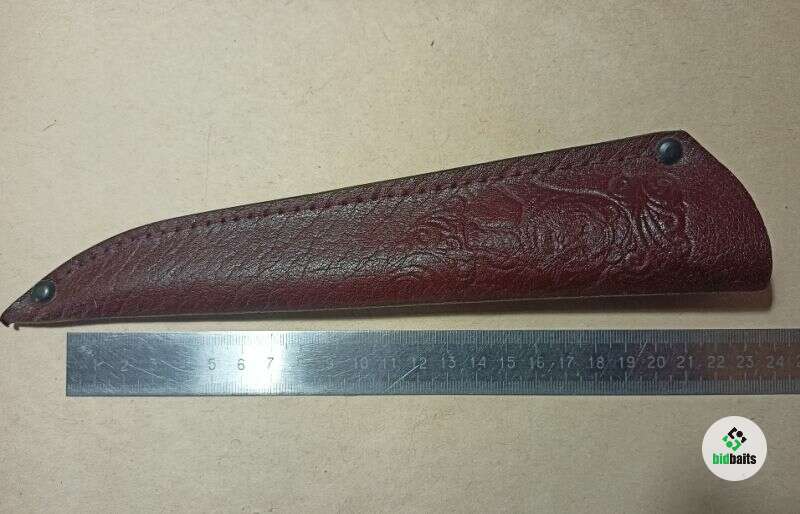 Ножны кожаные, прошиты крепежной строчкой. На ножнах имеется тиснение "Медведь".