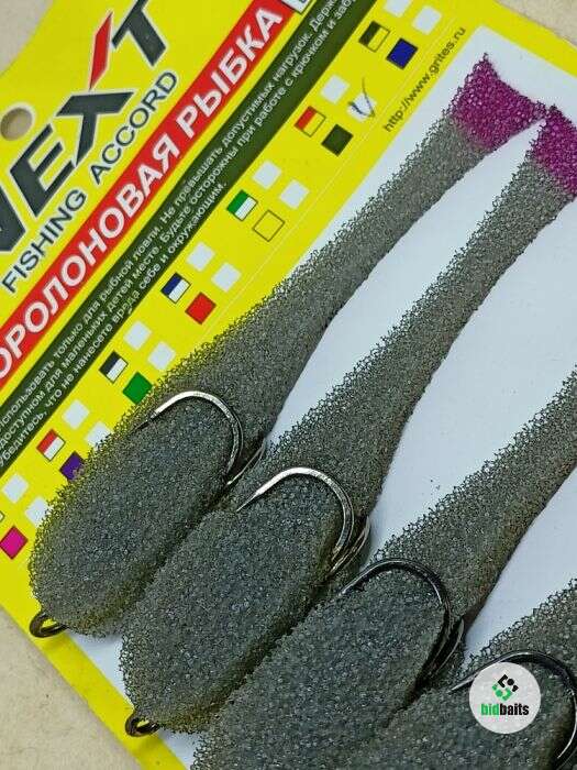 Поролоновая рыбка Next FA 100 мм, на двойнике, цв. Серый