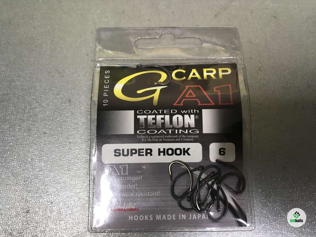 Gamakatsu A1 G-CARP SUPER HOOK - крючок, который предназначен для ловли карповых рыб. Он произведен из кованой стали, что придает ему прочность и долговечность. А тефлоновое покрытие значительно снижает усилие на проникновение крючка в ткани ротового аппарата рыбы и гарантирует очень высокую реализацию поклевок. Благодаря химической заточке острия, рыбе сложней сорваться с крючка.