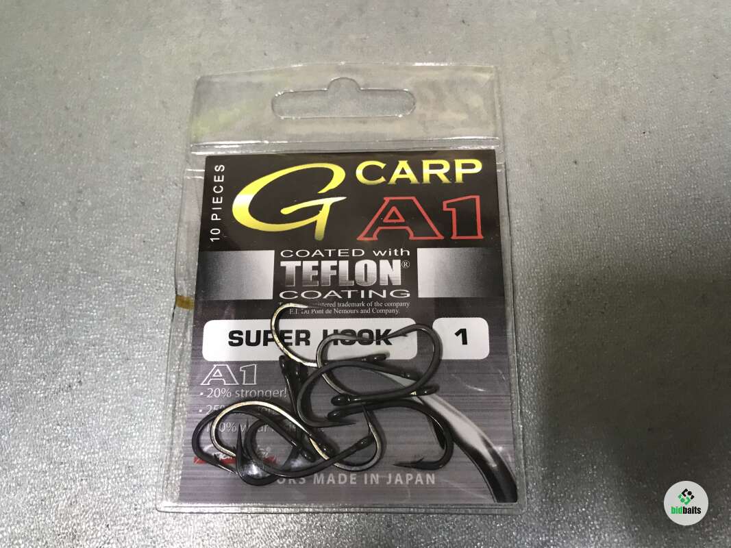 Gamakatsu A1 G-CARP SUPER HOOK - крючок, который предназначен для ловли карповых рыб. Он произведен из кованой стали, что придает ему прочность и долговечность. А тефлоновое покрытие значительно снижает усилие на проникновение крючка в ткани ротового аппарата рыбы и гарантирует очень высокую реализацию поклевок. Благодаря химической заточке острия, рыбе сложней сорваться с крючка.