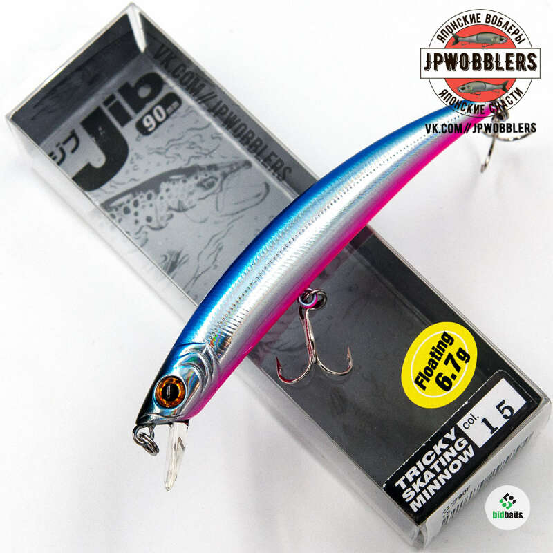Воблеры серии Jib от торговой марки Smith выпускаются в нескольких модификациях, которые отличаются заглублением и степенью плавучести. Модель F обладает положительной степенью плавучести. Для Jib F подойдет как равномерная или рывковая проводка, так и Stop&Go. Оснащается данный воблер минноу системой балансировки, которая не только улучшает его полетные качества, но и стабилизирует игру приманки при проводке. Продуманная форма тела заставляет воблер переваливаться с боку на бок, совершая размашистые движения. Длина модификации 90 F составляет 9 см., а вес – 6,7 гр. Кроме своего внешнего вида и игры воблер манит голодных хищников еще и шумовыми эффектами.