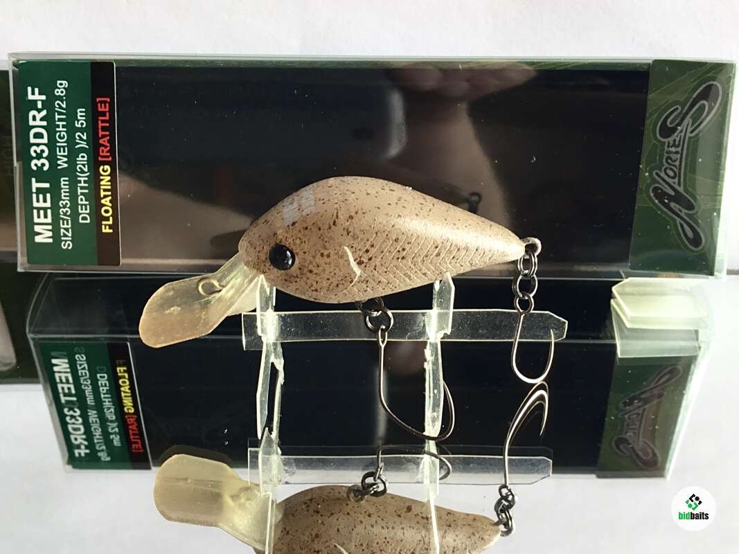 Meet 33DR-F - воблер для ловли прудовой форели. Воблер разрабатывался для облова среднего и придонного слоя водоема, заявленное заглубление до 2.5 метров. Но главная особенность Meet 33DR-F заключается в его лопатке, имеющей не стандартную форму.