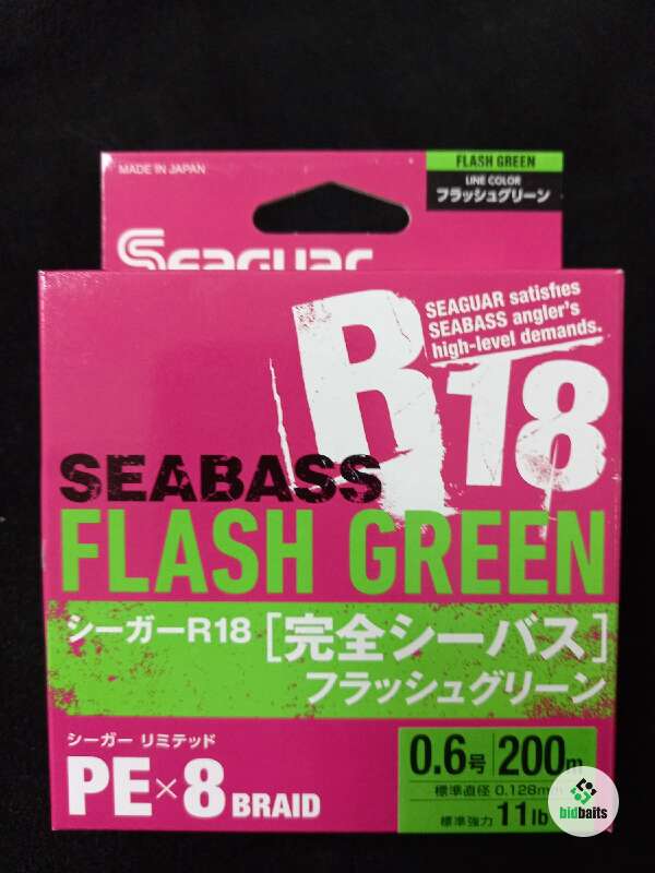 Плетеный шнур Seaguar R-18 Seabass Flash Green X8 200m - восьмижильная плетенка с круглым сечением. Шнур обеспечивает отличную дальность заброса приманок и легкое скольжение сквозь кольца. Плетенка R18 Sea Bass очень прочная и устойчивая к разрывам. Шнур с высокой чувствительностью фиксирует любые поклевки. Благодаря высокой прочности шнур может выдерживать экстремальные нагрузки. Серия может использоваться для любых техник спиннинговой ловли, хорошо подходит для ультралайтовых снастей. Плетенка Seaguar R18 Sea Bass PE выпускается в хорошо заметной ярко-зеленой окраске. Размотка - 200 м.