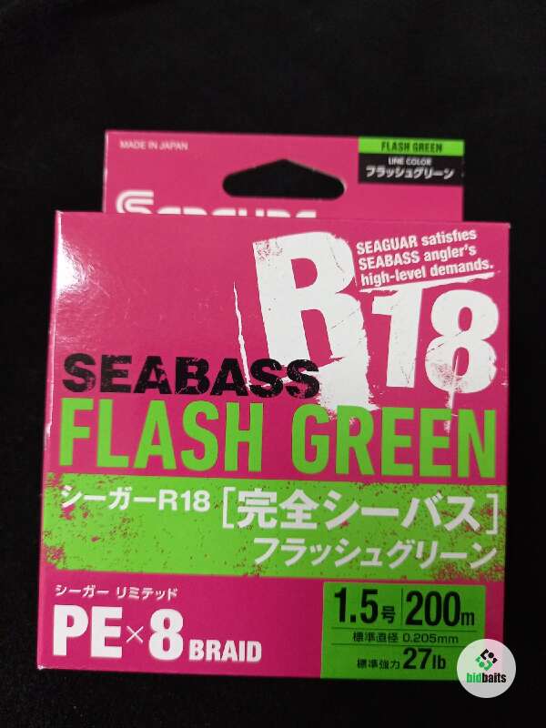 Плетеный шнур Seaguar R-18 Seabass Flash Green X8 200m - восьмижильная плетенка с круглым сечением. Шнур обеспечивает отличную дальность заброса приманок и легкое скольжение сквозь кольца. Плетенка R18 Sea Bass очень прочная и устойчивая к разрывам. Шнур с высокой чувствительностью фиксирует любые поклевки. Благодаря высокой прочности шнур может выдерживать экстремальные нагрузки. Серия может использоваться для любых техник спиннинговой ловли, хорошо подходит для ультралайтовых снастей. Плетенка Seaguar R18 Sea Bass PE выпускается в хорошо заметной ярко-зеленой окраске. Размотка - 200 м.