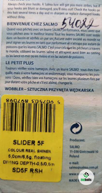 Новый Salmo Slider 5F, цвет - REAL SHINER, плавающий. Длина - 5 см., вес - 6,5 грамм. Заглубление: 0,5/0,5 метра.