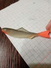 Для оснащения вставьте крупный крючок примерно посередине туловища рыбки.