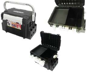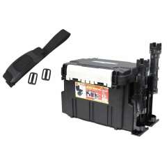 Ящик выполненный из прочного черного пластика, оборудован прочной ручкой для переноски. Крышка обладает высокой прочностью и может служить сиденьем. С торцов ящика крепятся стойки - держатели удилищ (приобретаются отдельно).