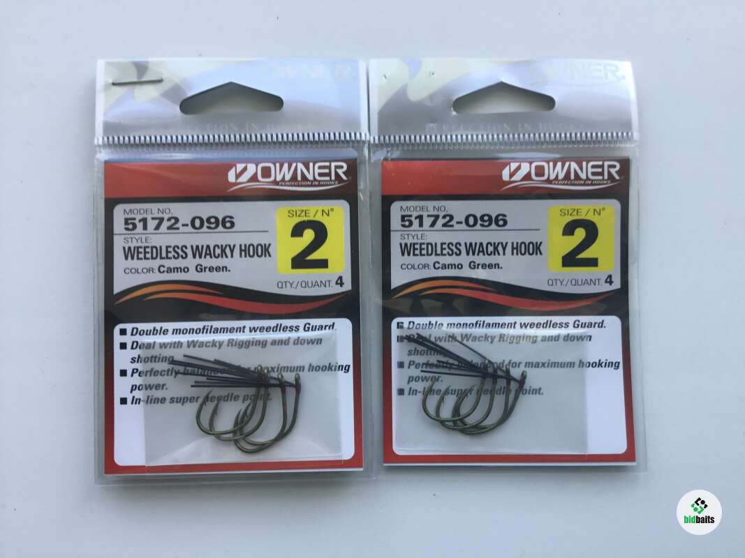 Owner/C’ultiva 5172 Wacky Weedless Hook – специальный крючок для монтажа «вэки». Имеет защиту жала от подводной растительности и мусора в виде двух нейлоновых усов. Такой монтаж популярен в бассовой ловле. Мягкая силиконовая приманка, как правило, червь, реже слаг или виброхвост, крепится посередине тела.