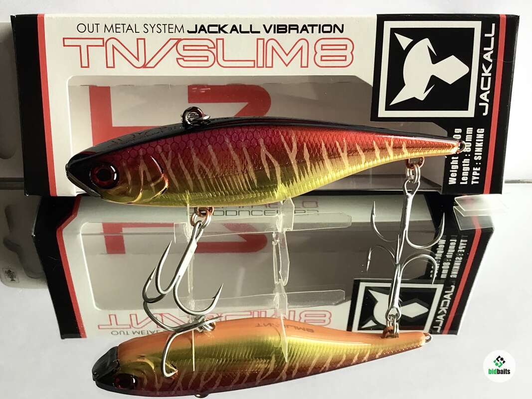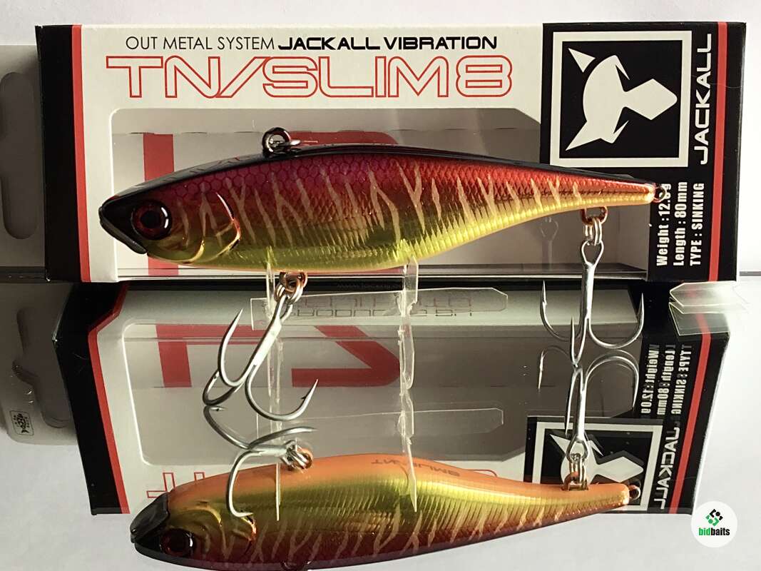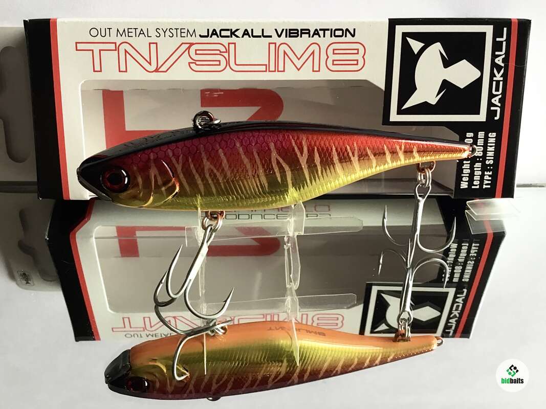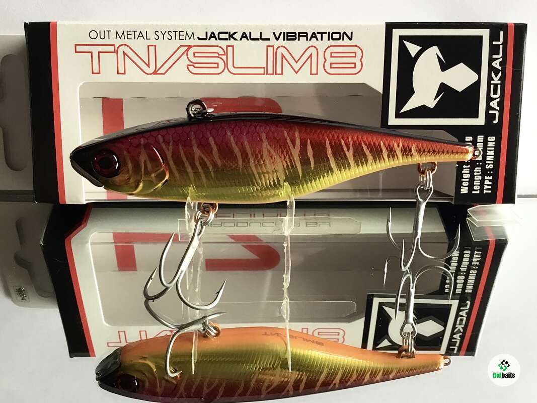 Jackall TN Slim 8 имея удлиненное, прогонистое , уплощенное с боков тело обладает хорошими полетными характеристиками. Металлический нос приманки защищает её от ударов о подводные препятствия и также стабилизирует работу воблера на медленных скоростях проводки. При прохождении препятствия воблер просто переваливается через них. Свинцовый груз цилиндрической формы в теле приманки издает низкочастотный звук, слышимый рыбой с больших расстояний.Характерная особенность TN SLIM 8 – дополнительная петелька на хвосте приманки. Рыболов может подвесить еще один крючок с опушкой, либо стример, или маленький твистер, разнообразив тем самым игру и привлекательность приманки. Кроме равномерной проводки на разных скоростях эта приманка позволяет осуществлять и рывковую, джерковую проводку. Воблер отлично ловит всех наших пресноводных хищников. При ловле в верхних слоях воды на высоких скоростях подмотки выступает одной из самых интересных приманок при ловле жереха.