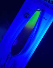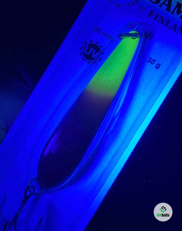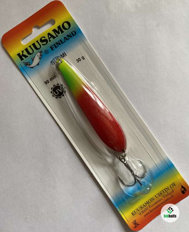 Блесна Kuusamo Suomi 90/30 GL/GR/FYe/R-C, UV (внут/сторона медь)