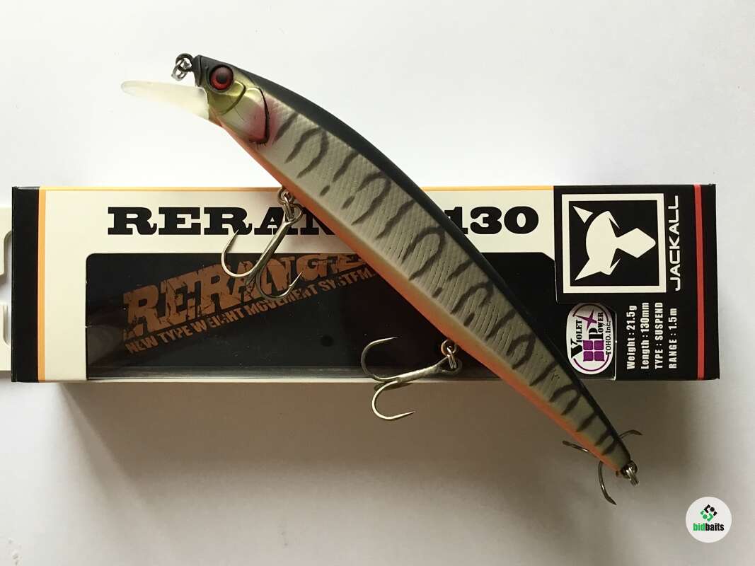 Rerange 130SP – воблер класса минноу от компании Jackall . Rerange 130SP имеет новую запатентованную систему дальнего заброса с четырёх граммовым вольфрамовым грузиком цилиндрической формы, покрытым фторуглеродной (флюорокарбоновой) оболочкой. Покрытие обеспечивает более лёгкое скольжение грузика по специальному каналу в теле приманки и позволяет добиться недостижимой ранее дальности и точности заброса даже при сильном ветре. При рывковой проводке (твичинге) воблер широко ходит из стороны в сторону, покачивая всем телом и привлекая внимание рыбы с больших расстояний. Приманка стабильно работает на рывках любой силы и частоты. На паузах Jackall Rerange 130SP зависает в толще воды, слегка покачивая боками и оставаясь привлекательной для хищника. Основной объект ловли - щука, причём трофейных размеров.