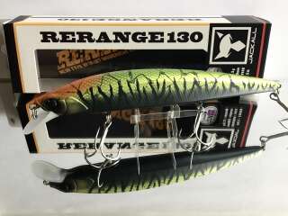Rerange 130SP – воблер класса минноу от компании Jackall . Rerange 130SP имеет новую запатентованную систему дальнего заброса с четырёх граммовым вольфрамовым грузиком цилиндрической формы, покрытым фторуглеродной (флюорокарбоновой) оболочкой. Покрытие обеспечивает более лёгкое скольжение грузика по специальному каналу в теле приманки и позволяет добиться недостижимой ранее дальности и точности заброса даже при сильном ветре. При рывковой проводке (твичинге) воблер широко ходит из стороны в сторону, покачивая всем телом и привлекая внимание рыбы с больших расстояний. Приманка стабильно работает на рывках любой силы и частоты. На паузах Jackall Rerange 130SP зависает в толще воды, слегка покачивая боками и оставаясь привлекательной для хищника. Основной объект ловли - щука, причём трофейных размеров.