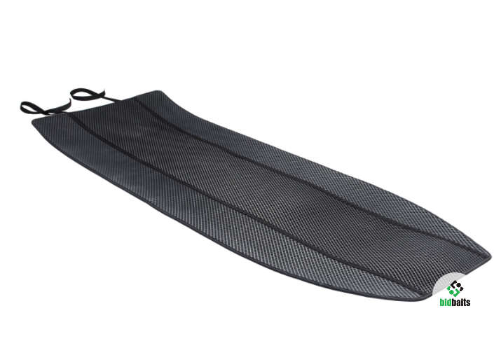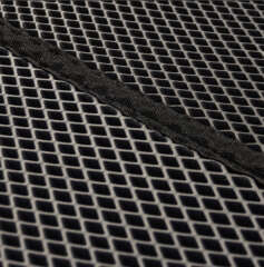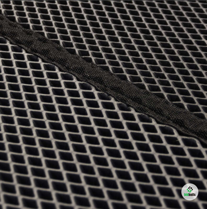 Материал EVA отличается пружинистостью, поглощает удары и смягчает нагрузку. Он химически толерантен и не разрушается при контакте с агрессивными средами. Также, этиленвинилацетат не создает благоприятную среду для жизнедеятельности грибка и плесени. Поверхность коврика не скользящая, состоит из ромбовидных ячеек. Эти ячейки собирают основную массу песка и грунта, не давая крупицам повреждать ткань лодки, забиваясь в пространство между палубой и бортом. Окантовка из прочной стропы придает изделию эстетичный внешний вид. В свернутом виде коврик фиксируется застежкой на "липучке". При всех достоинствах коврик EVA имеет малый вес. Изготавливается компанией "Мастер лодок" по форме палубы специально для данной модели лодки.