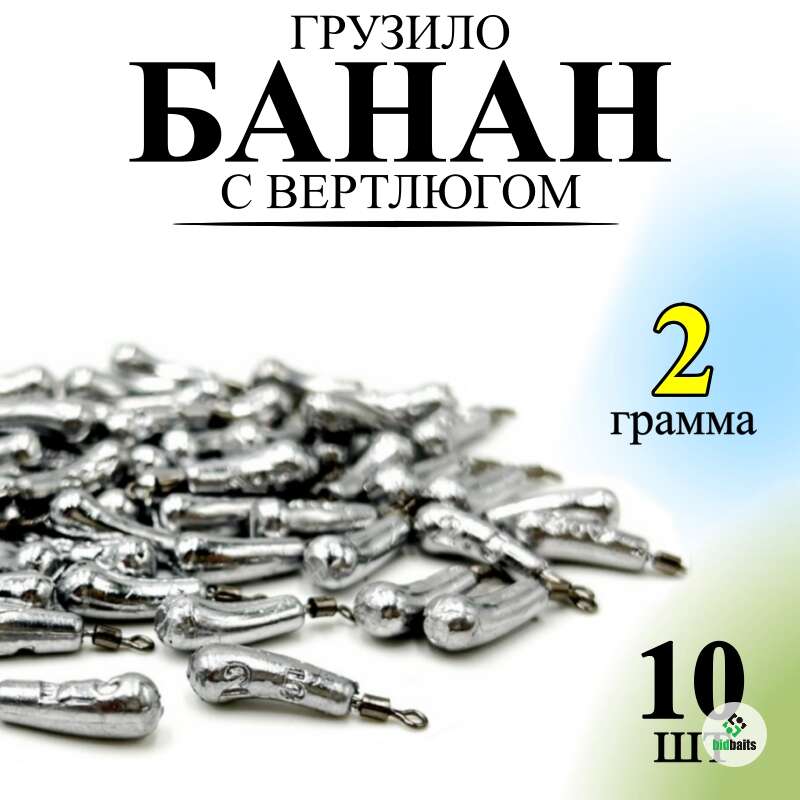 Груза для отводного поводка, джиг-рига Банан 2 гр (2 грамма) - 10 шт/Груз Банан с вертлюгом 10 штук