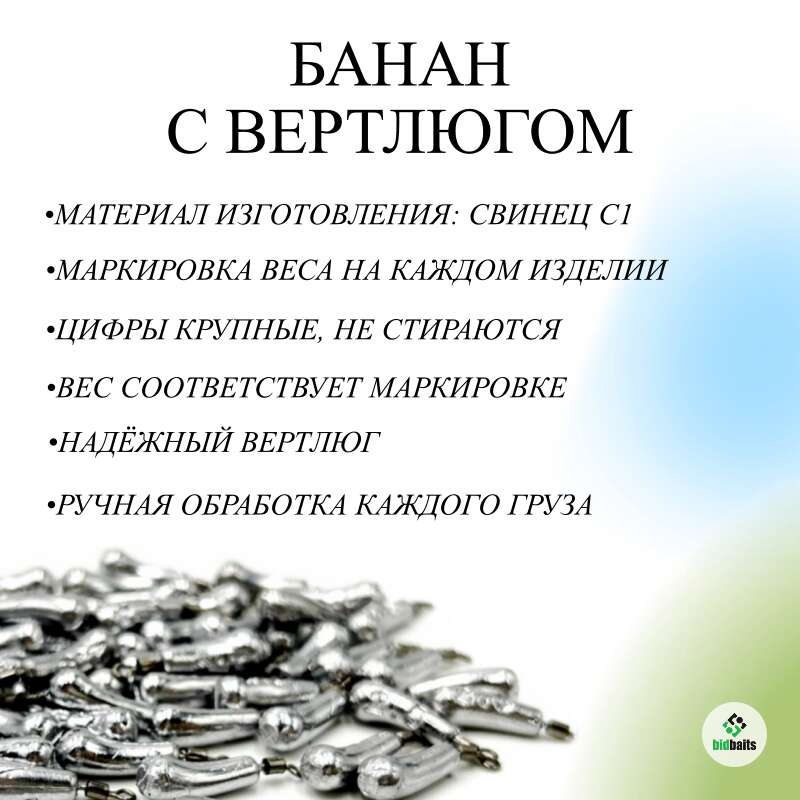 Каждый груз имеет четкую маркировку, с цифрами тиснением во внутрь. Для изготовления грузил используется качественный вертлюг, который не разлетится при забросе. Упаковка по 10 шт в прочный пакет. Все пакеты запаяны, что гарантирует доставку грузил в заявленном количестве. Так же мы можем собрать заказ в индивидуальном количестве, пишите в сообщения.