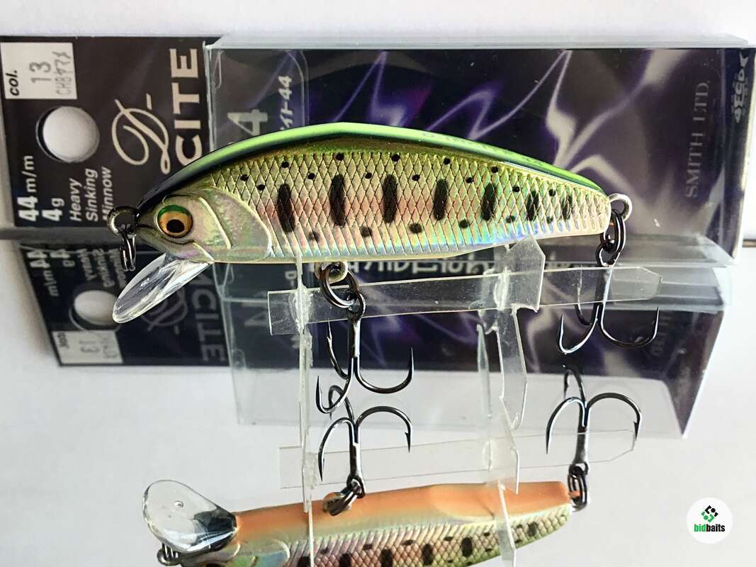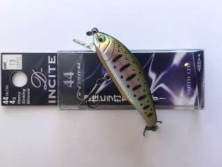 Smith D-Incite 44 - уловистый воблер для быстрого поиска хищника на течении.D Incite относят к минноу, но в форме есть плавная горбинка, характерная для шеда. Сплюснутое с боков тело легко и непринужденно режет поток, заставляя тело воблера мелко и частотно дрожать, выманивая форель из укрытий. Способность погружаться на паузе, привлекательно покачивая боками, поможет добрать даже самую осторожную особь. Благодаря отличной балансировке далеко и точно летит при забросе. Несмотря на изначальную лососевую направленность, воблер отлично ловит всех хищных рыб средней полосы, особо отличается по так называемым "белым" хищникам - жереху, голавлю и язю.