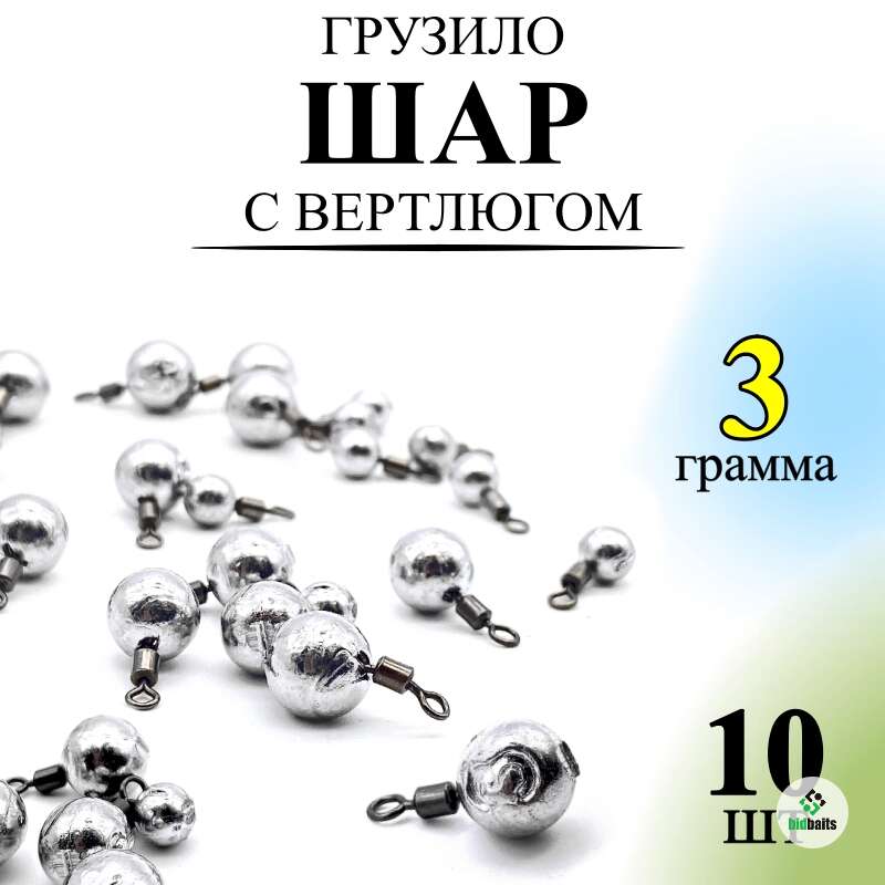 Груза для отводного поводка, джиг-риг шар 3 гр (3 грамма) - 10 шт /Груз шарик с вертлюгом 10 штук