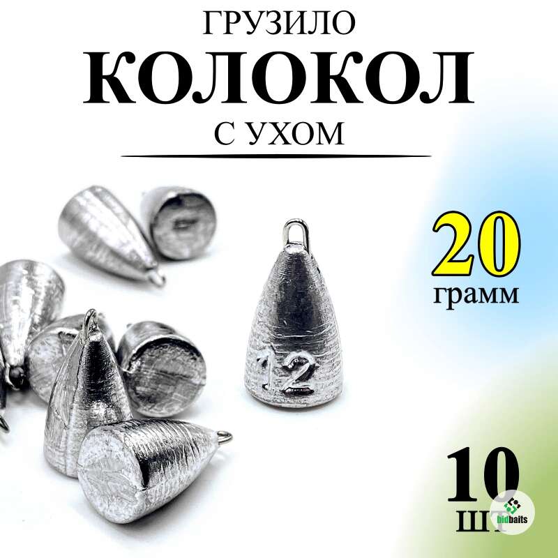 Джиг-риг, колокол с ухом 20 гр (20 грамма) - 10 шт / Груз пирамидка с ухом 10 штук