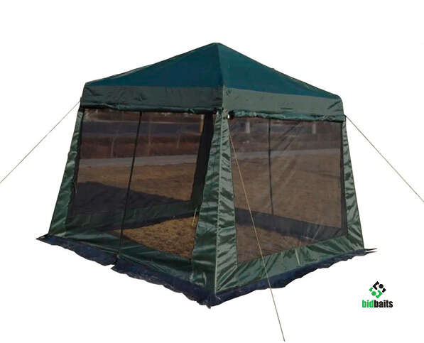 Модель усиленная - комплектуется стальным каркасом, что придает конструкции жесткость, а это особенно важно при использовании шатра на природе в ветер. Дополнительное преимущество - по всему периметру шатра натянута москитная сетка, которая в дверном проеме закрывается на молнию. В случае плохой погоды - при дожде или ветре - двери и окна можно закрыть тентом на молнии. Шторки из тента несъемные, в случае ненадобности специальным креплением их можно закрепить вверху окон или дверей.