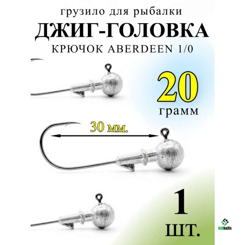 Джиг-головка на крючке ABERDEEN №1/0 - 20 гр. (10 шт)