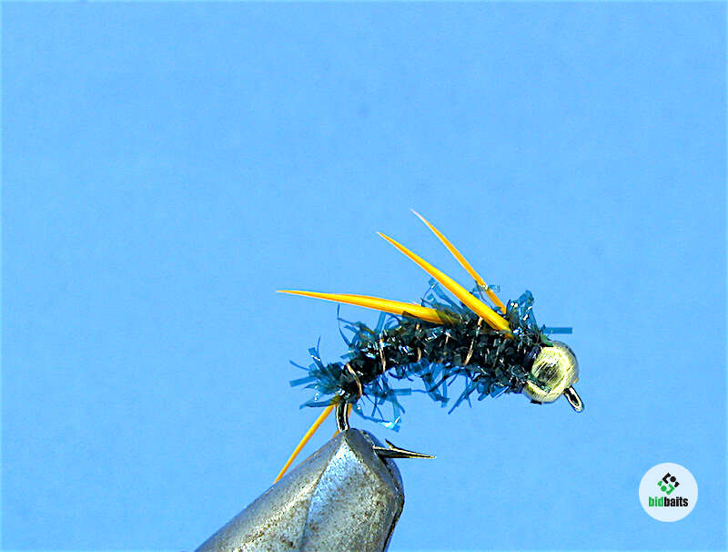 Нимфа Колючка оранж/зеленая на крючке №10