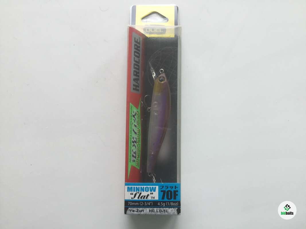 Для того, чтобы «оживить» Hardcore Minnow Flat 70F, можно применить твичинг. Именно эта проводка лучше всего подходит для минноу. Для любых условий ловли можно выбрать наиболее подходящий стиль. Плавучесть этой модели положительная. Поэтому, чтобы не допустить столкновения с каким-либо препятствием под водой, нужно лишь остановить проводку, тогда воблер всплывет. Длина Hardcore Minnow Flat 70F составляет 7 см при весе 4,5 гр. Этот размер универсален и позволяет охотиться на разных хищников. Рабочий горизонт находится на глубине 50 см. Отличительной чертой воблеров Yo-Zuri/Duel является то, что корпус имеет голографическое покрытие. Оно делает приманку заметнее для хищника.